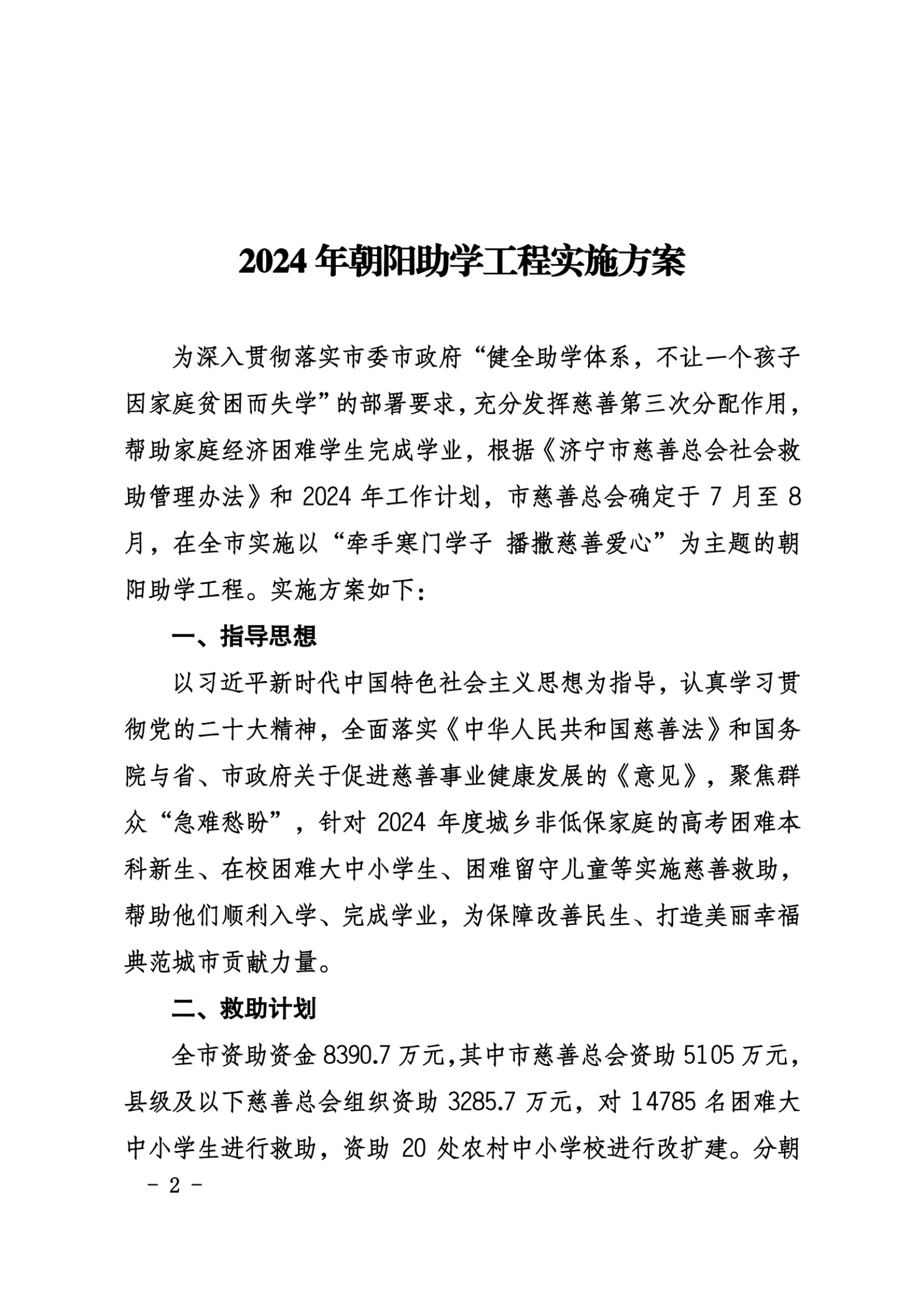 2024年朝阳助学工程实施方案