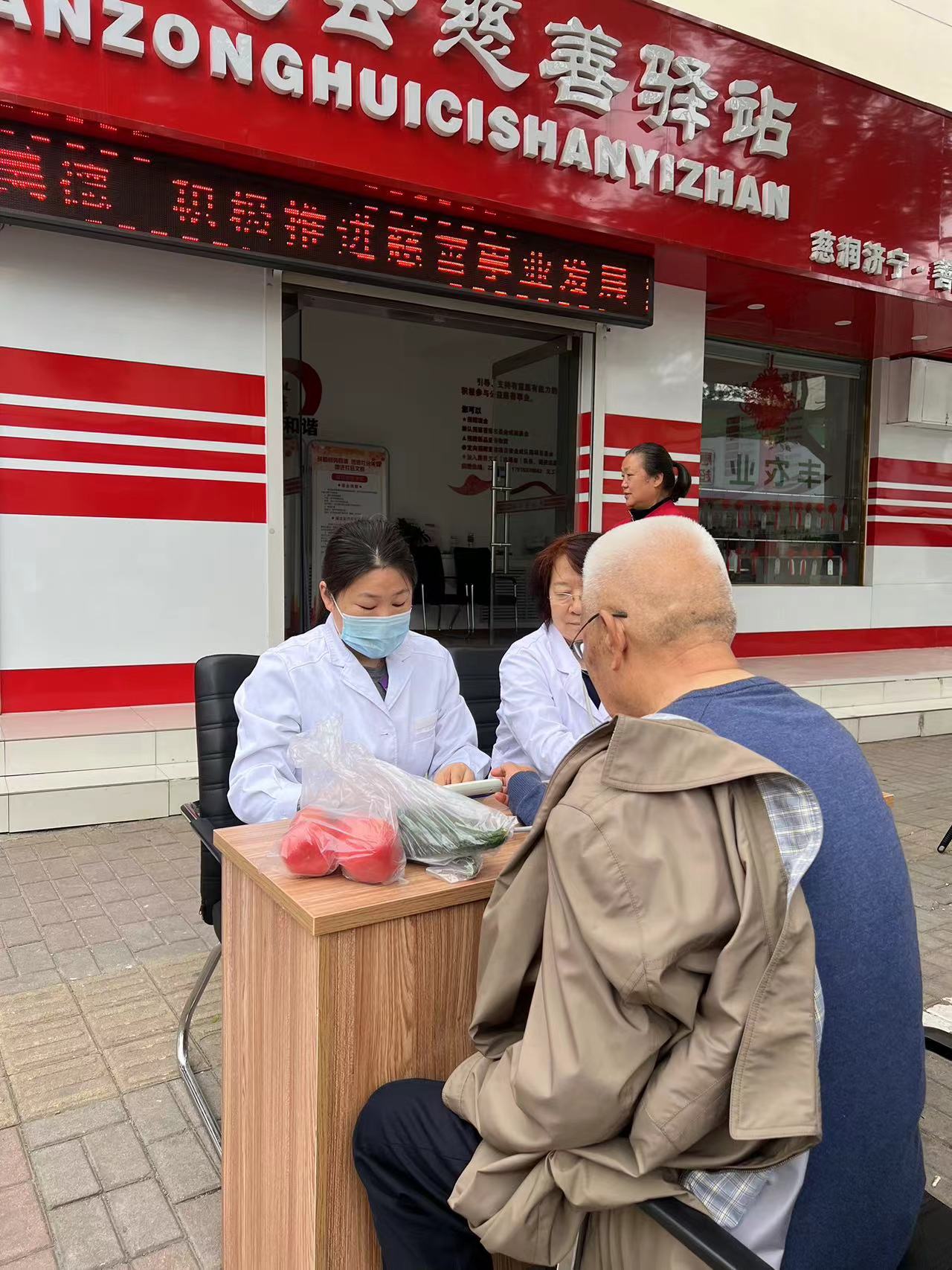 2024年4月28日上午,济宁慈善蓝天至爱义工团组织慈善义工在慈善驿站开展惠民志愿服务活动,为附近的居民群众提供免费看诊、量血压体重、按摩等服务,受到了东门社区居委会和附近居民的好评。