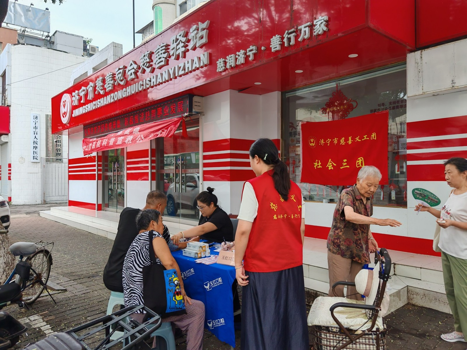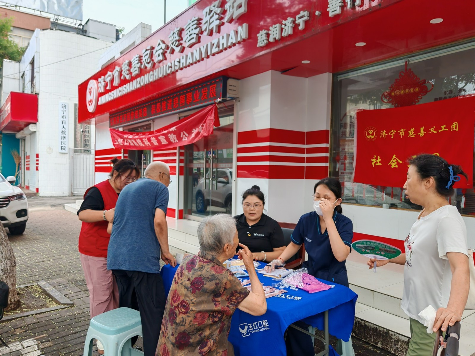 2024年7月23日上午,济宁市慈善义工社会三团联合济宁市玉红口腔医院在慈善驿站开展惠民志愿服务活动,为附近的居民群众提供免费的牙科体检和血压血糖的量测服务,受到了服务对象们的一致好评。