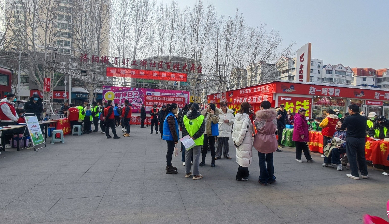 2025年2月18日下午,应财工街社区居委会邀请,济宁市慈善总会组织社会四团、奔跑义工团、回回义工团等十余个慈善义工在太白商业广场开展“善益集市”惠民志愿服务活动。活动项目包括:义诊、义剪、免费按摩、公益宣传、防走失手环发放等等。活动现场热闹非凡,在社区居委和慈善义工们的努力下,活动取得了很好的公益效果和宣传效果,不仅为财工街社区增添了热闹喜庆的氛围,也帮助了很多有需要的居民群众,获得了社会各界的广泛好评。