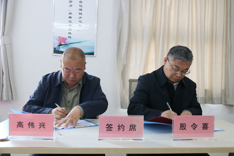 市慈善总会秘书长殷令喜(右)与济宁京华眼科医院法人代表高伟兴签订慈善冠名专项基金捐赠协议