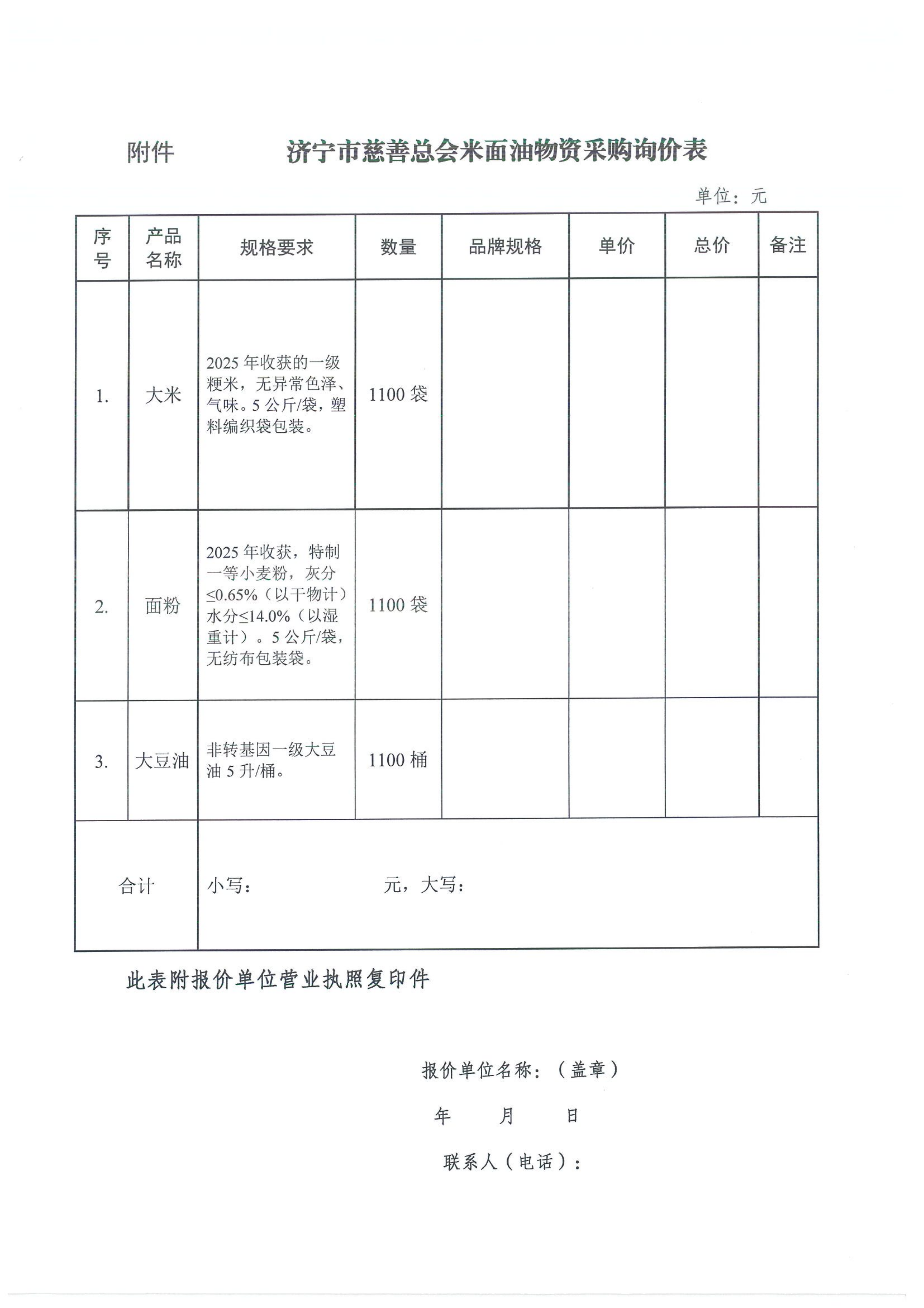 米面油物资采购询价函